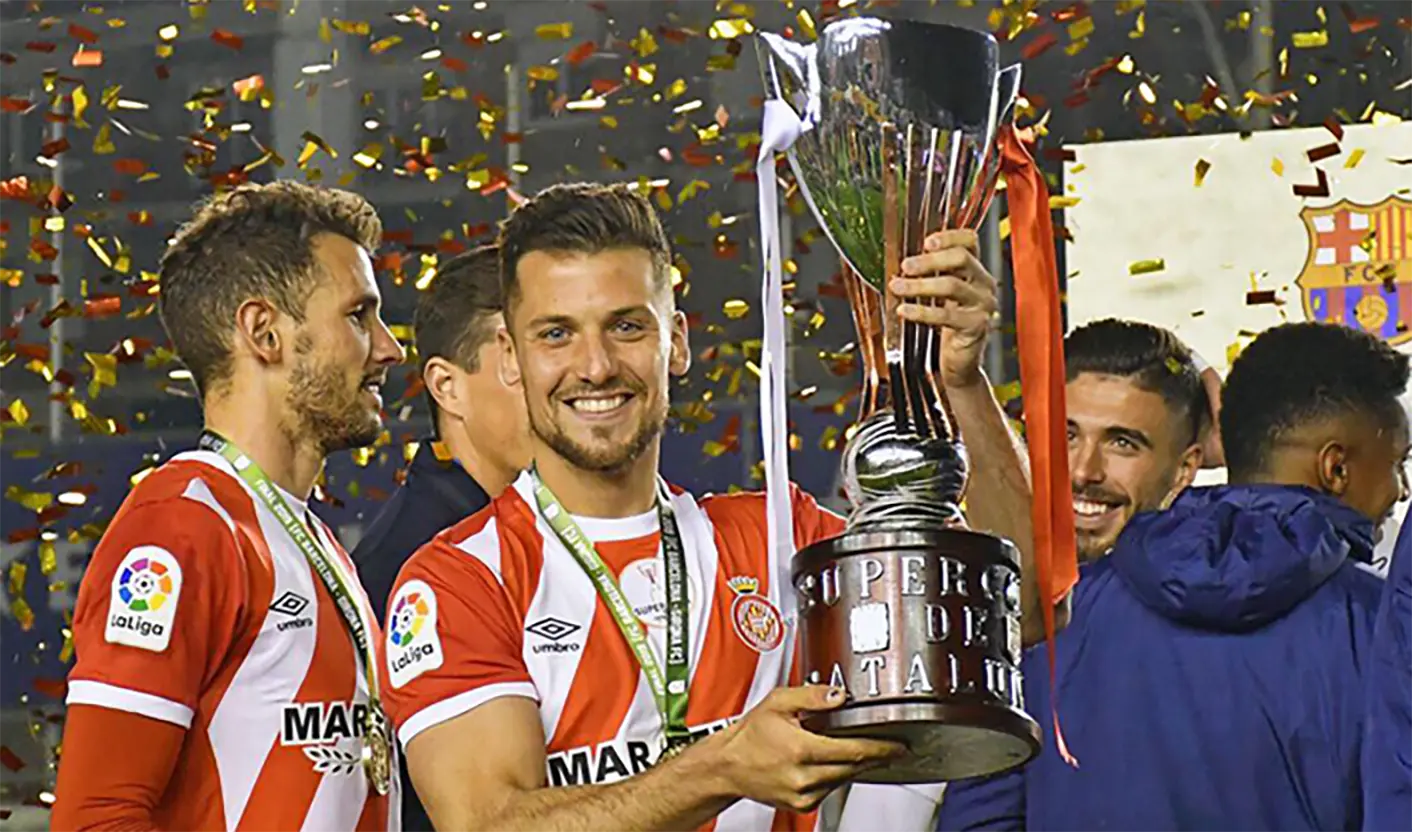2019年3月,吉罗纳再创历史,力克西甲豪门巴塞罗那,将加泰罗尼亚超级杯捧回家,成为新一届的加泰罗尼亚之王。